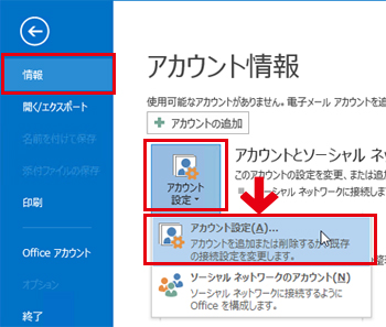 [情報]で[アカウント情報]を出し、[アカウント設定]-[アカウント設定(A)]をクリックします。