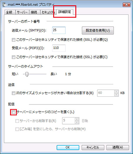 | [サーバーにメッセージのコピーを置く] | チェックを外す※ |